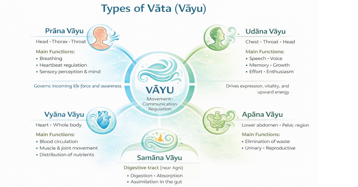 This dual role is why Vata is considered central to both physical activity and mental alertness in Ayurveda.