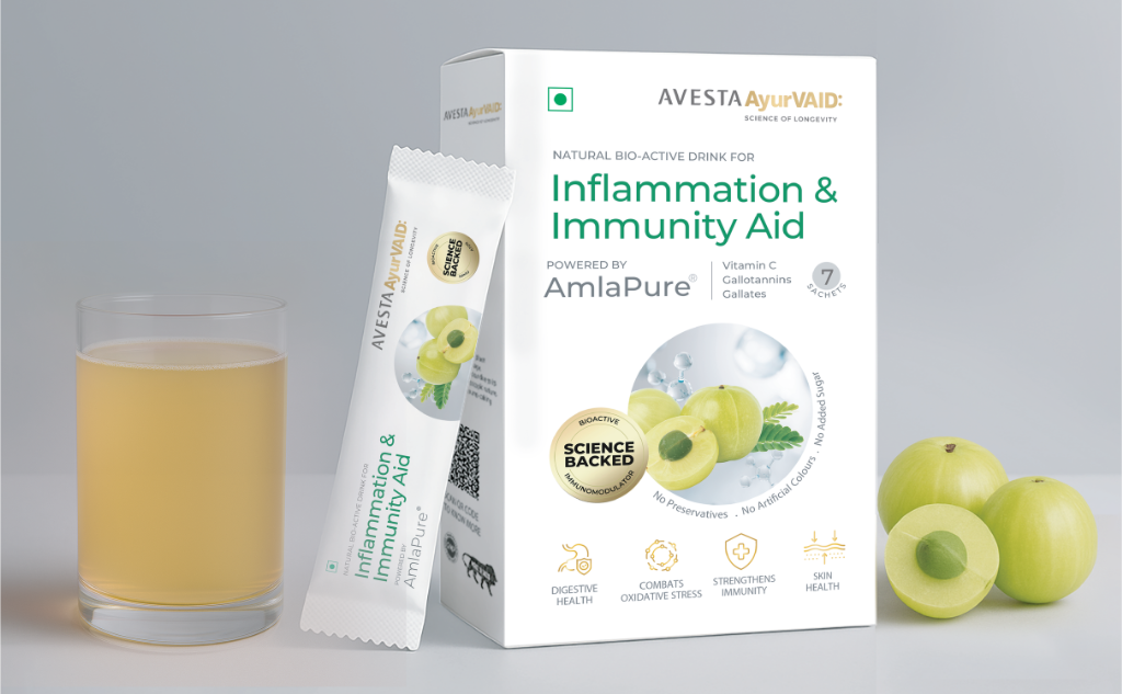 - Avesta AyurVAID Inflammation & Immunity Aid is a bioactive beverage enriched with AmlaPure® that works to enhance your immune system, reduce inflammation, and support gut health. It helps the body regulate its natural inflammatory response, protects against oxidative stress, and aids in cell rejuvenation. This ultra-pure hydration blend contains no added sugar, preservatives, or artificial colours.