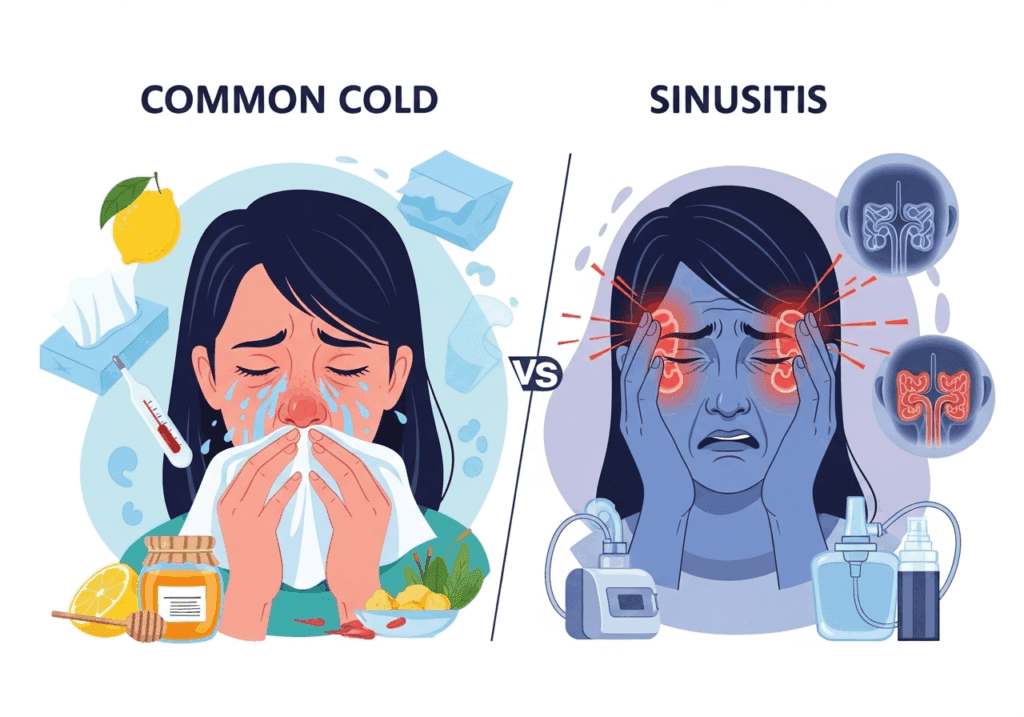 The usual attack of sneezes, running or blocked nose, persistent cough, and that general sense of being under the weather tends to prompt us to assume, “It’s just a cold.” Occasionally, though, these symptoms persist or become more pronounced, suggesting something more serious condition such as sinusitis. Grasping the difference between cold and sinus infection (medically termed as sinusitis) is essential to manage these effectively, and Ayurveda provides a comprehensive guide to navigate through these conditions efficiently. While contemporary medicine aims at alleviating symptoms, Ayurveda prioritises identifying unique stages and treating underlying imbalances in the body. Let’s discuss sinus cold symptoms and sinus infection vs cold in this blog.