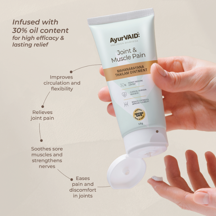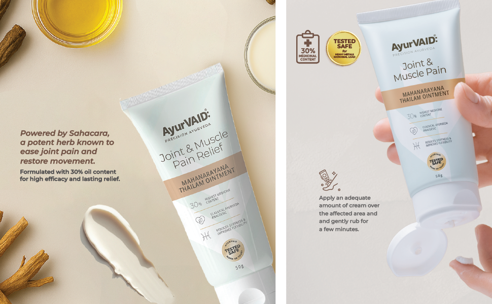 Here’s the honest part: traditional oils are wonderful, but not always convenient. They can be greasy, time-consuming to apply, and not ideal for travel and hard to use during busy routines. And that is where AyurVAID’s Mahanarayana Thailam Ointment changes the experience. It takes the classical strength of the oil and brings it into a clean, easy-to-use ointment.