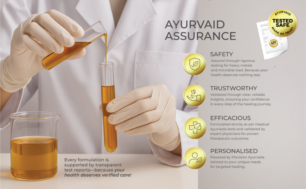 Our products consistently fall well within the safety limits prescribed by the Ayurvedic Pharmacopoeia of India (API), assuring you that what you’re applying is clean, compliant, and trustworthy.