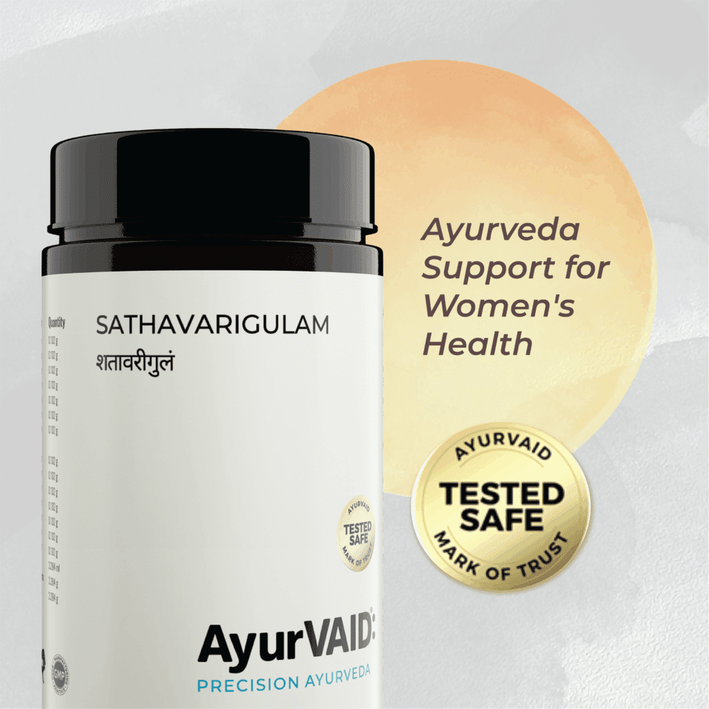 • AyurVAID Sathavarigulam It is a classical Ayurveda medicine that is prescribed in the treatment of menstrual abnormalities, UTI, and undernutrition. With Shatavari (Asparagus racemosus), Jeera (Cuminum cyminum), and Ghee, the preparation is known to promote the female reproductive system, reinforce the uterus, as well as restore physical power and lactation of new mothers. Its gentle, nourishing properties make it suitable for women at every stage of life, supporting reproductive wellness, urinary health, and overall vitality.